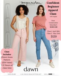 Join us for a highly anticipated fun and skill-building 4-week jean-making class where you’ll create your very own custom-fit pair of jeans! Using the Dawn Jeans Pattern by Megan Nielsen, students will learn essential techniques for working with denim, including fitting, topstitching, zipper installation, and waistband construction.